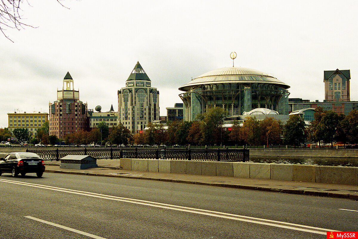 Космобамианская набереная Москва-реки. Вид с Краснохолмской набережной. Сентябрь 2011. PENTAX MZ-3; SMC PENTAX FA 1:4 28-70mm AL; HOYA SKYLIGHT (1B); Kodak Professional ProFoto XL 100; Фотопроект.