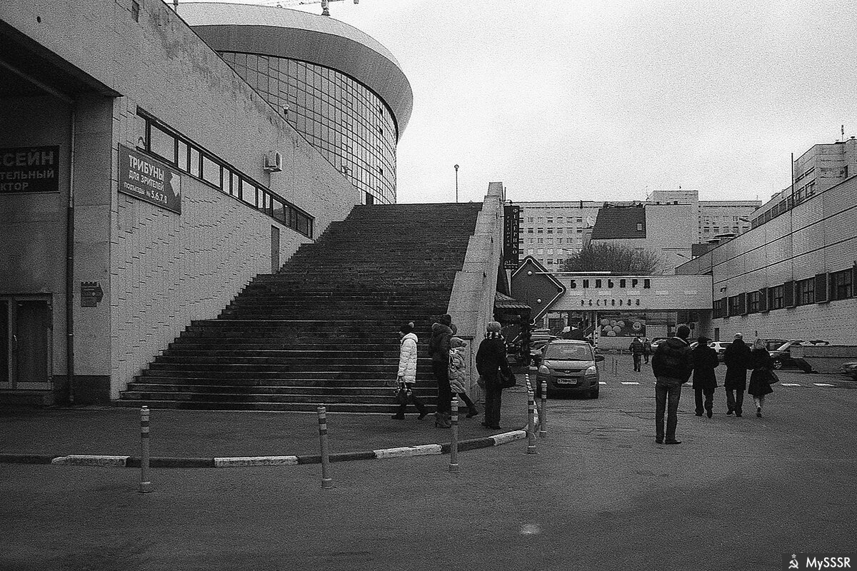Стадион Олимпийский в Москве. Январь 2012. Canon EOS A2; CANON ZOOM LENS EF 28-105mm 1:3.5-4.5 II USM; Kenko L37; FOMAPAN profi line action 400; Фотопроект.